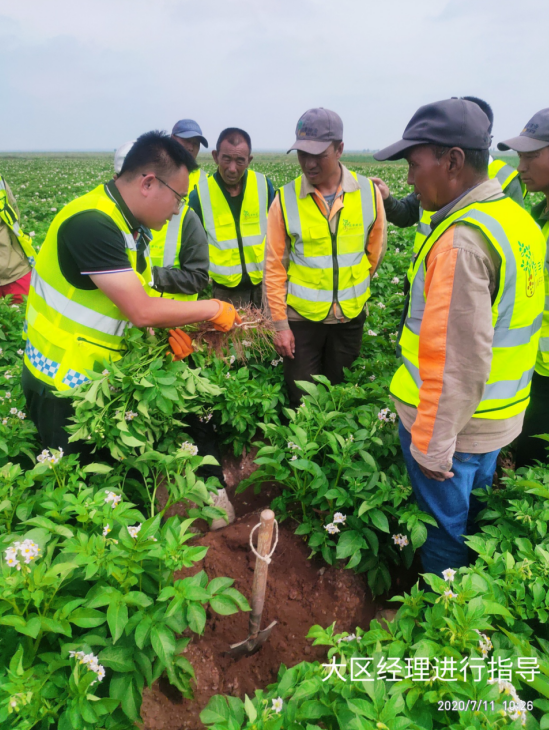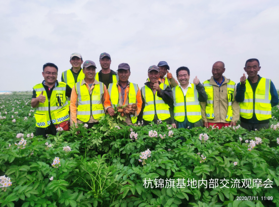 (通訊員 宋江江)2020年7月11日,民豐種業(yè)杭錦旗農(nóng)場(chǎng)組織開展內(nèi)部觀摩交流活動(dòng)?;顒?dòng)由大區(qū)經(jīng)理、農(nóng)藝師、管理員、基地經(jīng)理、機(jī)手等13人參加,在大區(qū)經(jīng)理門大偉的帶領(lǐng)下大家對(duì)各地塊馬鈴薯問題進(jìn)行的探討、研究,針對(duì)各基地問題做到早發(fā)現(xiàn),早溝通,早預(yù)防,就重大問題進(jìn)行立項(xiàng)研討并提出改進(jìn)方案及措施。同時(shí),對(duì)管理成就突出的地塊進(jìn)行現(xiàn)場(chǎng)學(xué)習(xí),共享田間管理方面、經(jīng)驗(yàn)及做法。