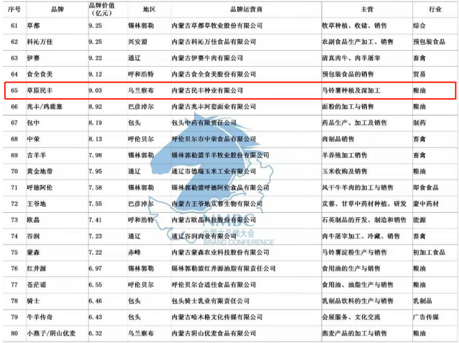 公司注冊有種薯“草原民豐”、鮮薯“敕勒川”和“塞宜德”、燕麥加工系列“陰山優(yōu)麥”等品牌商標(biāo),其中“草原民豐”2013年被授予“內(nèi)蒙古著名商標(biāo)”,“草原民豐”牌馬鈴薯系列產(chǎn)品2013年被授信為“中國著名品牌”,并榮獲“第十一屆中國國際農(nóng)產(chǎn)品交易會參展產(chǎn)品金獎”。公司自主選育的馬鈴薯新品種“民豐紅”,被評定為內(nèi)蒙古“名優(yōu)特”產(chǎn)品,2010年獲“中國民營科技創(chuàng)新成果金獎”,2015年正式通過自治區(qū)品種認定,同年榮獲“自治區(qū)主席質(zhì)量獎”榮譽稱號。2017 年“民豐種業(yè)、草原民豐、敕勒川、塞宜德、陰山優(yōu)麥”品牌被評為內(nèi)蒙古農(nóng)畜牧產(chǎn)品市場領(lǐng)先品牌,2018年榮獲“自治區(qū)優(yōu)秀民營企業(yè)”稱號,2019年“草原民豐”品牌被評為“2019年內(nèi)蒙古馬鈴薯產(chǎn)業(yè)行業(yè)標(biāo)志性品牌”,內(nèi)蒙古品牌價值評估值9.03億元,在內(nèi)蒙古品牌總榜單排名第65位。2020年在抗擊疫情過程中,被湖北慈善總會、烏蘭察布紅十字會、烏蘭察布橋東社區(qū)等多地授予“愛心企業(yè)”稱號。